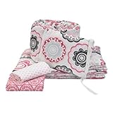 - Zinnia Rose crib set of 4 includes fitted crib sheet, crib skirt, bumper and play blanket