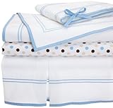 - Bumper, quilt, and bed skirt in white with binding and embroidered hotel stitching all around; modern tailored design brightens any nursery