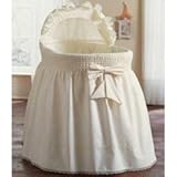 Ruffled and SmockedYour new baby, so pure and precious, deserves this pristine beauty, the ultimate in bassinets A replica of our original Embossed Damask Creation Bassinet set the full skirt is finished with a dainty bow at the center, lending this bassinet a unique flair that complements both traditional and modern decor. Lovely lace trims the smocked skirt and ruffled hood, creating the perfect setting for your little one A pleasurable sight for any proud mom