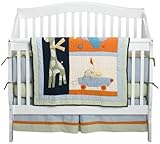 Shades of blue, orange, yellow and green offer appliques with adorable animals in all shapes and sizes. The bumper design is unpredictably combined with applique spaced with blocks of colorful fabrics. Includes quilt, bumper, sheet and dust ruffle.